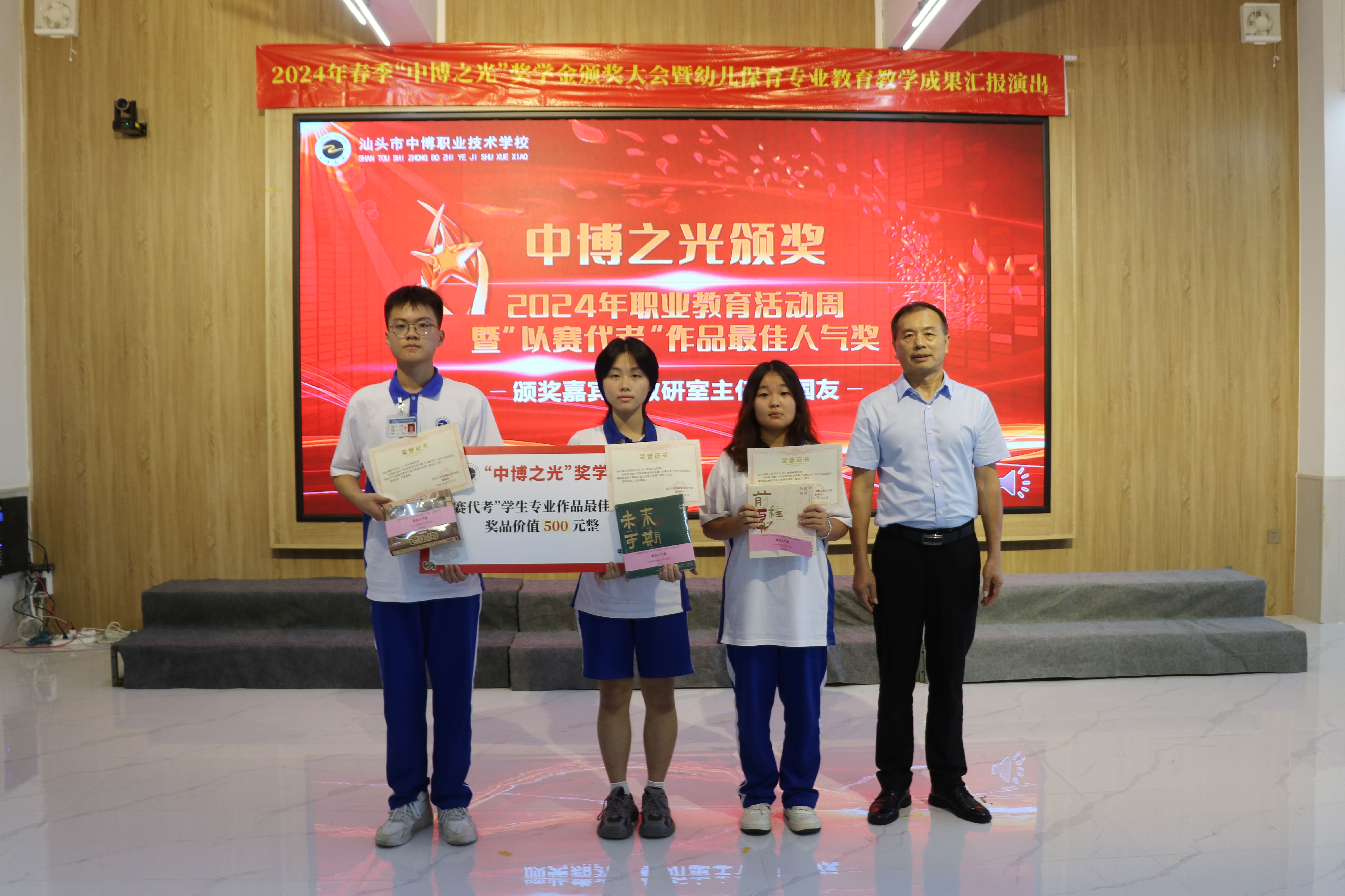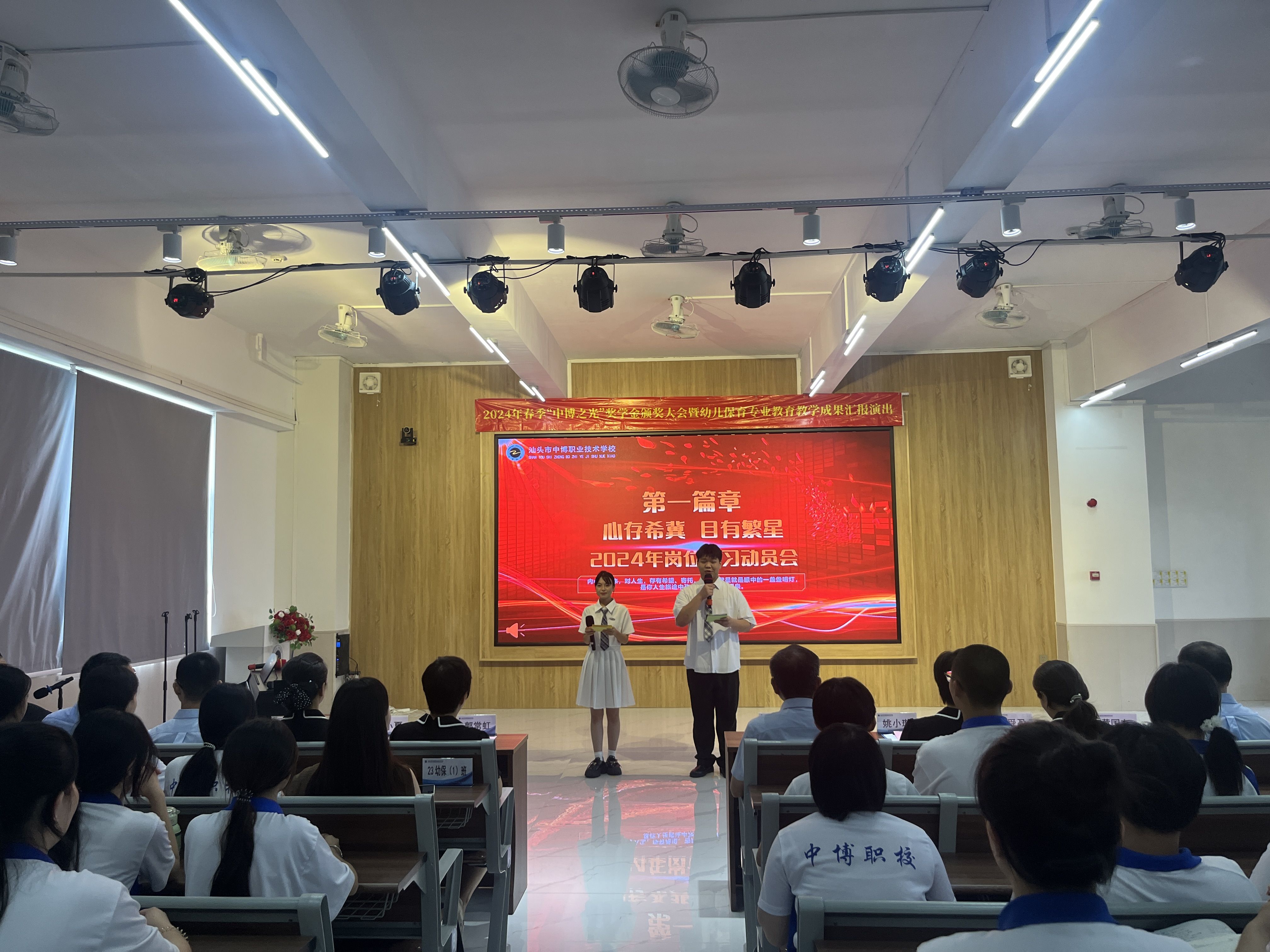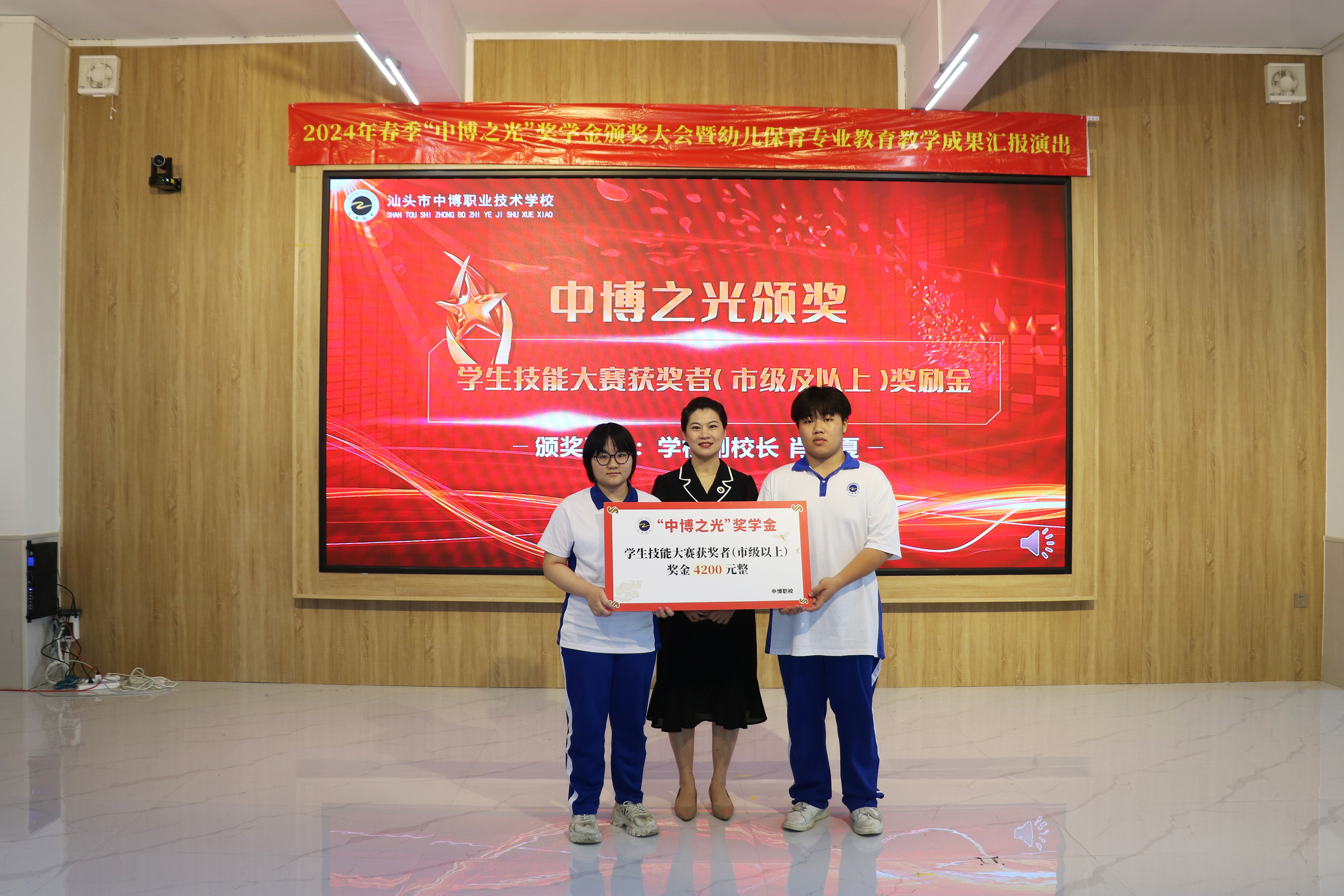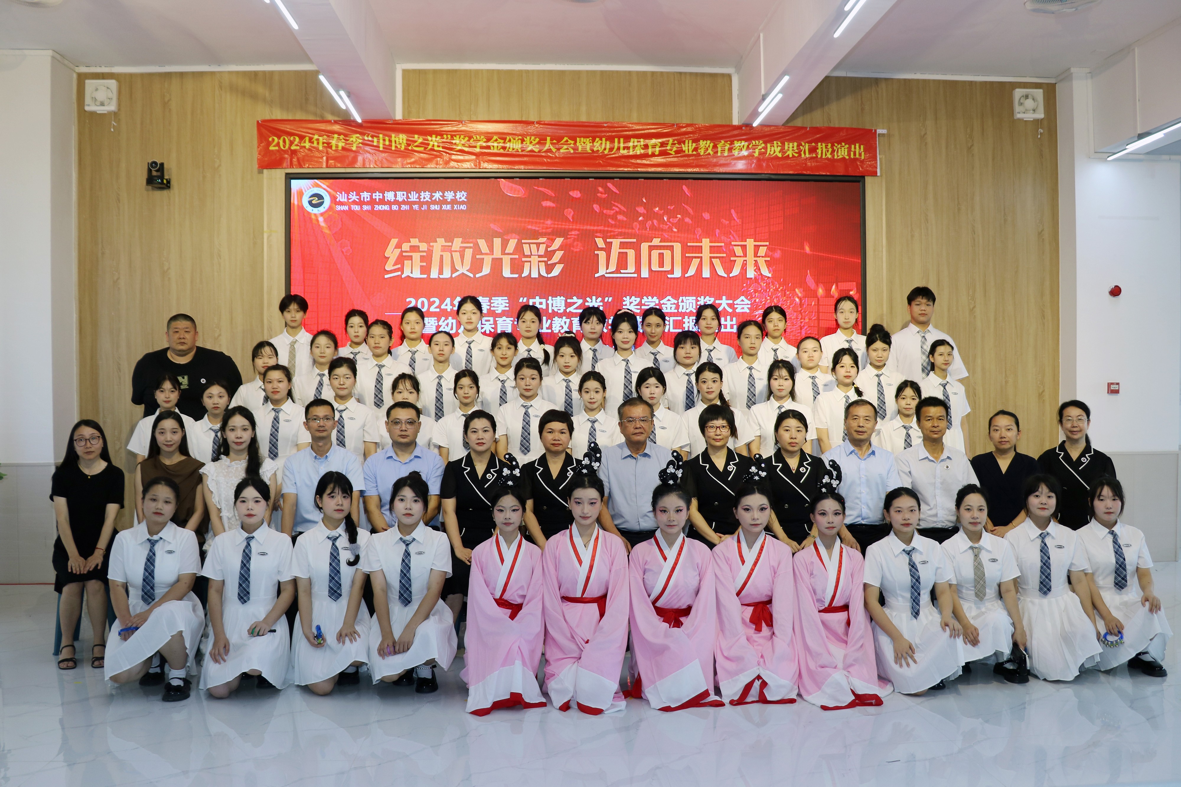 為進(jìn)一步加強(qiáng)專業(yè)建設(shè),表彰先進(jìn),檢驗(yàn)我校學(xué)風(fēng)建設(shè)成果及教學(xué)成果,提高人才培養(yǎng)質(zhì)量。我校于2024年6月12日下午舉行2024年春季“中博之光”獎(jiǎng)學(xué)金頒獎(jiǎng)大會(huì)暨幼兒保育專業(yè)教育教學(xué)成果匯報(bào)演出。集團(tuán)董事長陳中堅(jiān)、總校長郭常虹、執(zhí)行校長姚小璇、副校長肖小夏及學(xué)校各部門中層領(lǐng)導(dǎo)出席了本次活動(dòng)。參加活動(dòng)的還有2023級幼保專業(yè)班學(xué)生以及各“中博之光”獎(jiǎng)項(xiàng)領(lǐng)獎(jiǎng)代表。活動(dòng)由2022級幼保專業(yè)學(xué)生黃鍇淇、陳裕特主持。